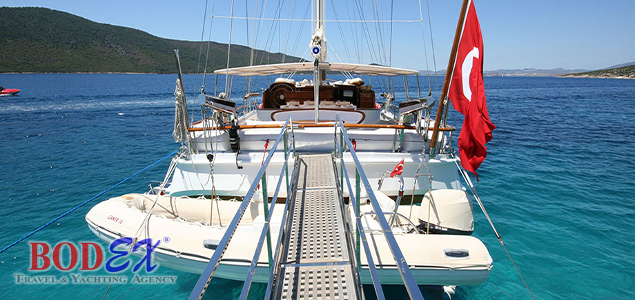 6 (Captain, Chef, Sailor, Deckhand, Hostess) in separate crew quarters. Language: Turkish, English.